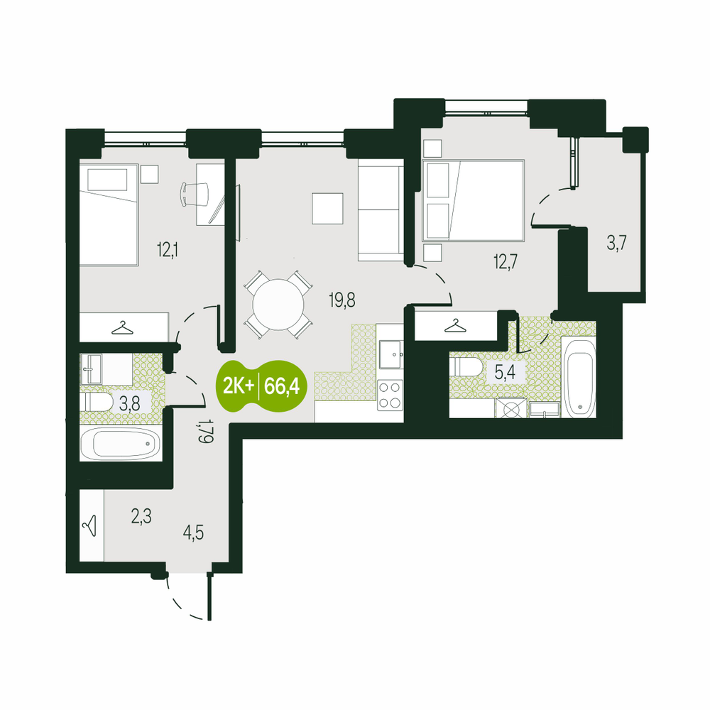 1, Секция 1, Этаж 12