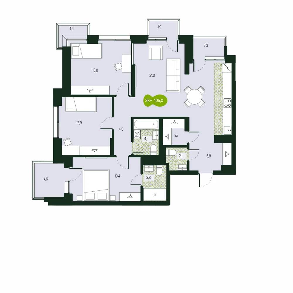 - № 312Секция Урбан-Вилла, Этаж 1