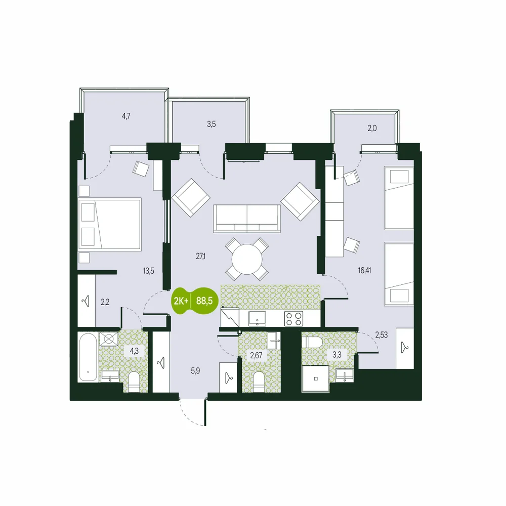 - № 313Секция Урбан-Вилла, Этаж 1