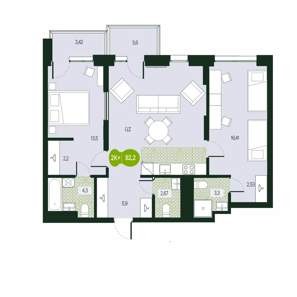 - № 342Секция Урбан-Вилла, Этаж 6